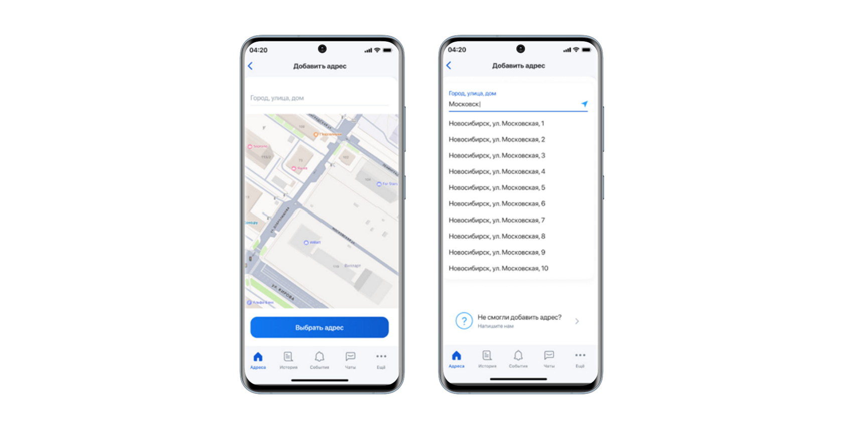 Пользователи не могли быстро находить адреса, из-за чего в службу поддержки поступало около 5000 обращений в месяц. Форматы и аббревиатуры адресов различались между системами, что приводило к ошибкам при добавлении новых адресов. Поиск в мобильном приложении требовал строгой последовательности ввода: населенный пункт – улица – дом – квартира, без возможности гибкого поиска.