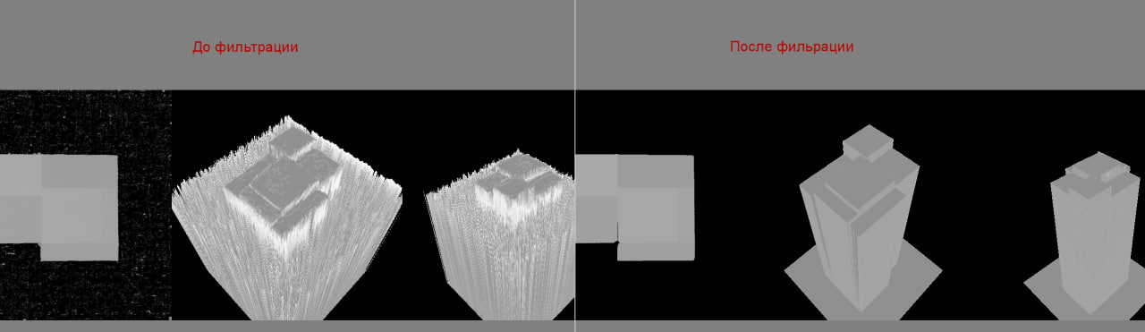 Карты высот здания до обработки шумовКарты высот здания после обработки шумовФинальная обработка массинга (тестовый вариант)