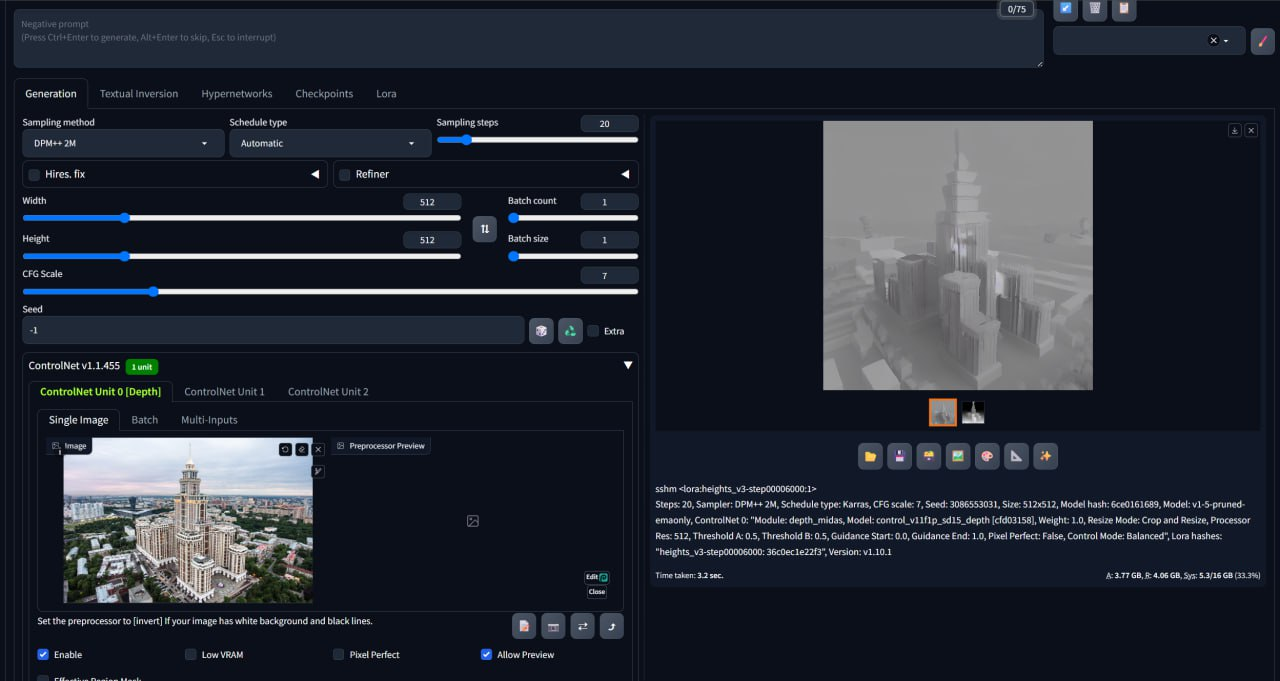 На их основе Stable Diffusion генерировала готовые визуализации зданий и кварталов в разных стилях, с разными материалами и окружением.