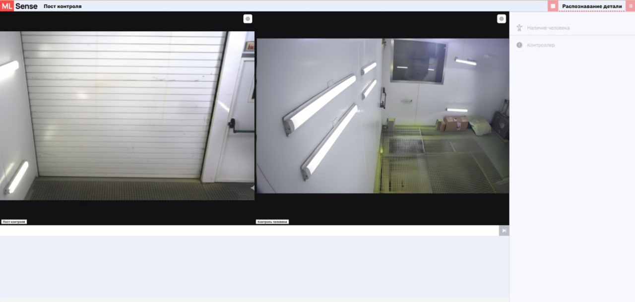 Покрасочная камера оснащена двумя модулями видеонаблюдения ML Sense. Первая камера контролирует положение и состояние детали, вторая — отслеживает возможное присутствие оператора в рабочей зоне. При обнаружении человека система немедленно блокирует процесс покраски и подаёт световой и цифровой сигнал о срабатывании защиты.