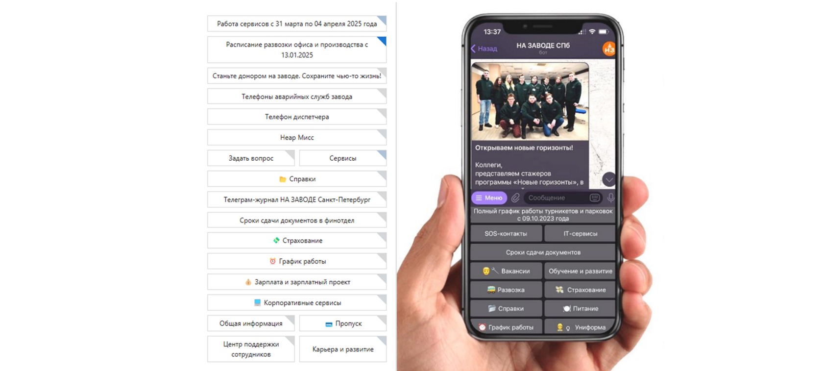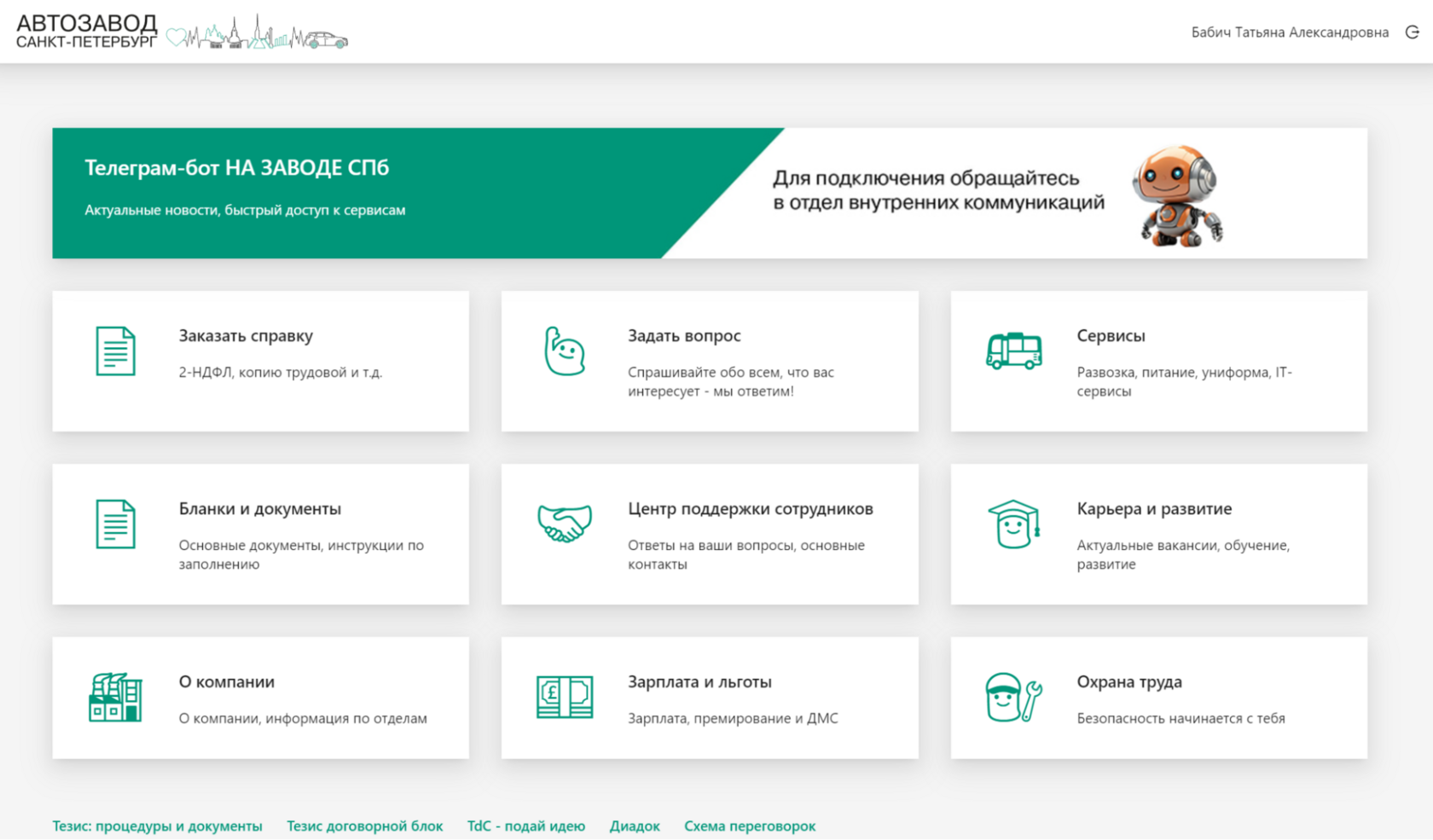 После успешного внедрения бота руководство завода решило отказаться от старой зарубежной платформы и полностью перенести корпоративный портал на новую импортонезависимую инфраструктуру KitBot. Новый портал предоставил: