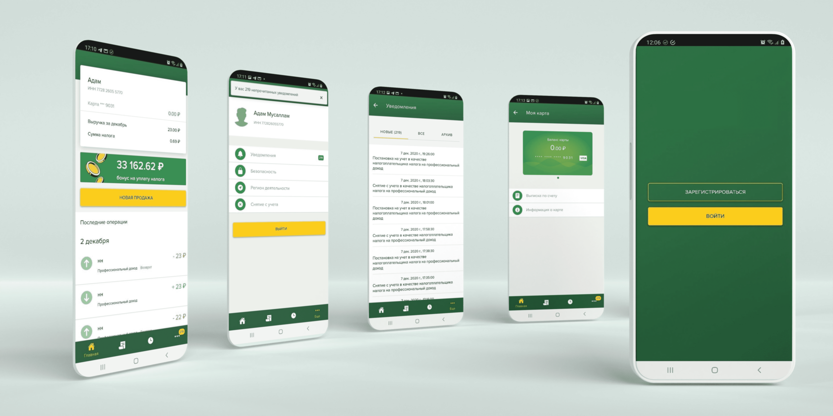 Пользователь приложения проходит этапы регистрации самозанятого согласно законодательству РФ, а также процесс онбординга. Далее он полноценно управляет своими финансами и сдает отчетность через приложение.