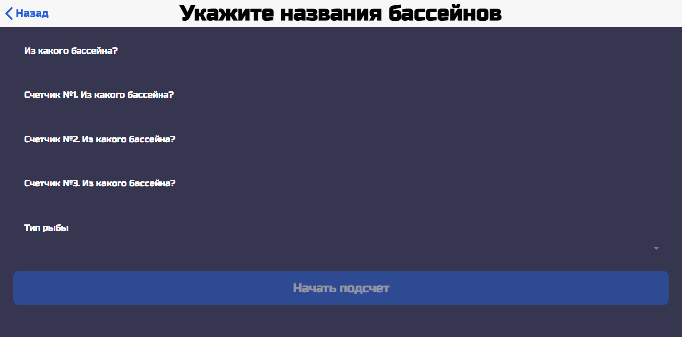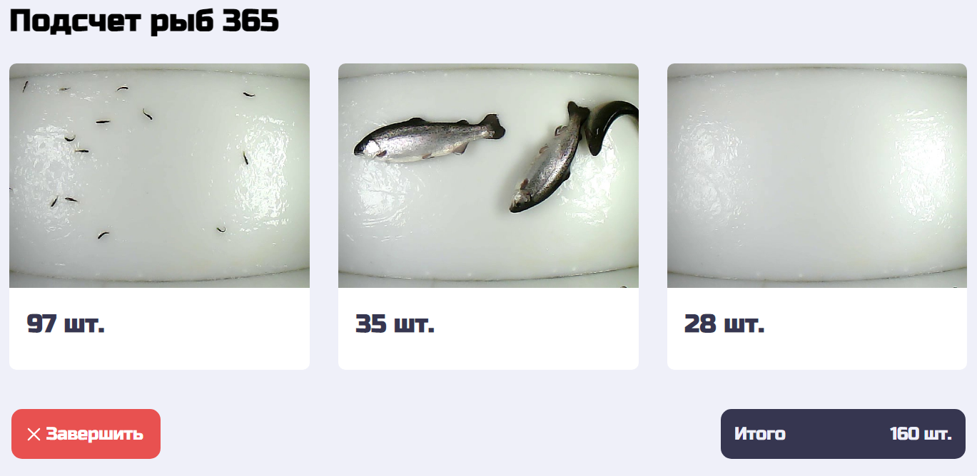 Перед стартом подсчета рыб оператор заполняет поля с названиями бассейнов, из которого будет подаваться рыба и куда эта рыба будет перегоняться. Когда подсчет рыб запущен, в режиме реального времени на экране отображается актуальная информация о количестве рыб, проплывающих на каждой камере. При этом приложение уведомляет оператора о слишком плотном потоке рыб (свыше 1500 шт. в минуту), чтобы соблюсти заявленную точность распознавания. При необходимости можно выбрать определенный период и выгрузить подробную статистику подсчета в формате Excel.