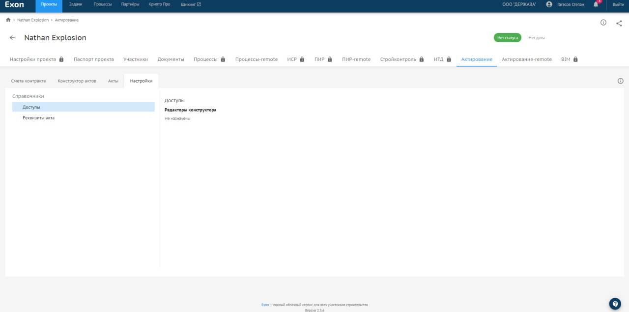 Когда смета согласована и передана в работу, документация переходит на этап «Конструктор актов», где ведется работа над строительным проектом.