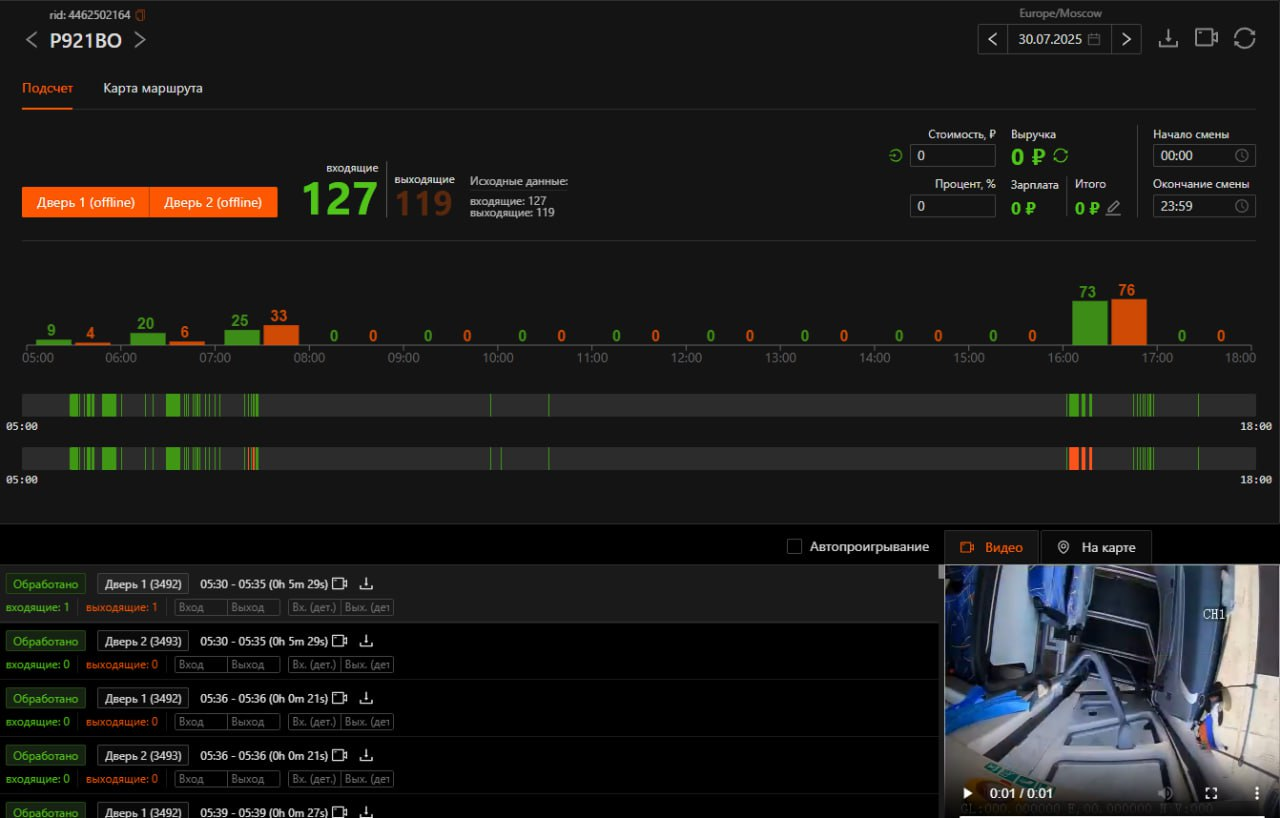 сравнивать вход и выход: например, если на производственной площадке зашло 40 сотрудников, а в городе вышло 60 — это сигнал о нарушении (в автобусе были посторонние);