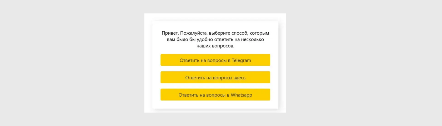 Еще одной важной задачей было создание единого окна, где соискатель мог выбирать удобный канал связи: Telegram, WhatsApp или веб-чат.