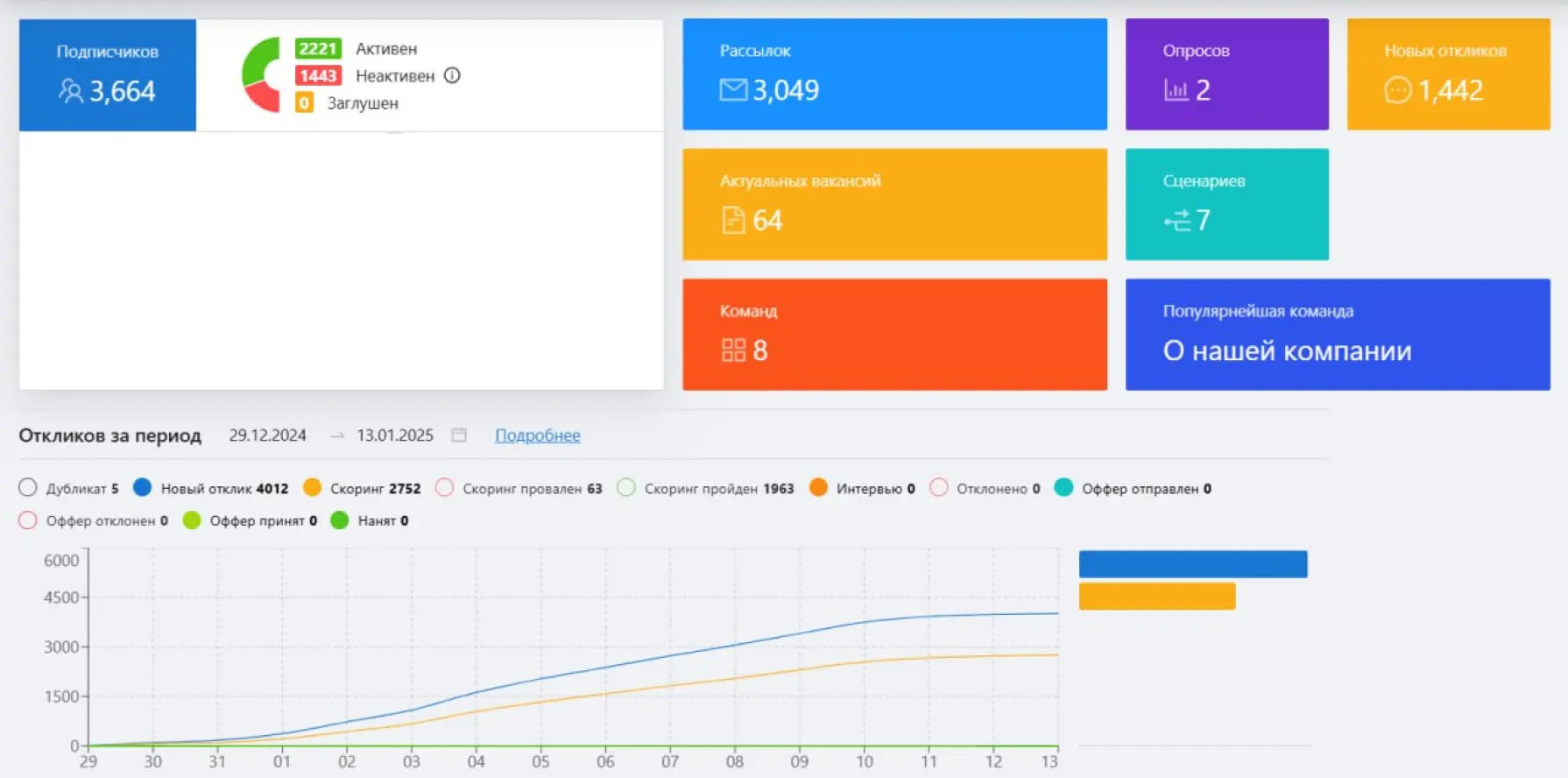 Для примера: только за новогодние праздники компания получила более 4000 откликов, из которых около 1900 кандидатов прошли первичный отбор. Вручную обработать такой объем заявок было крайне сложно.