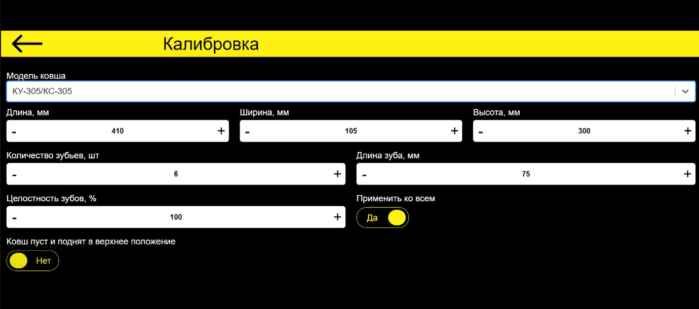 В программе есть возможность настроить % критического износа зубьев при котором происходит визуальное и голосовое уведомление о наступлении события машиниста. Кроме того, можно сохранить настройки для более точного контроля по умолчанию для разных моделей ковшей, которые устанавливаются на экскаваторы: