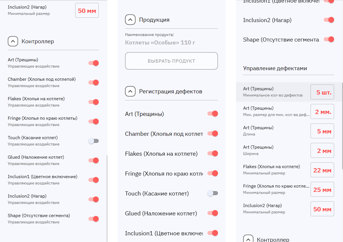 Cистема контроля дефектов на производстве котлет