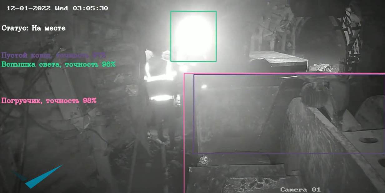 Качество распознавания не снижается в условиях плохой освещенности и во время движения по неровной поверхности шахты, а также при вибрациях во время работы техники