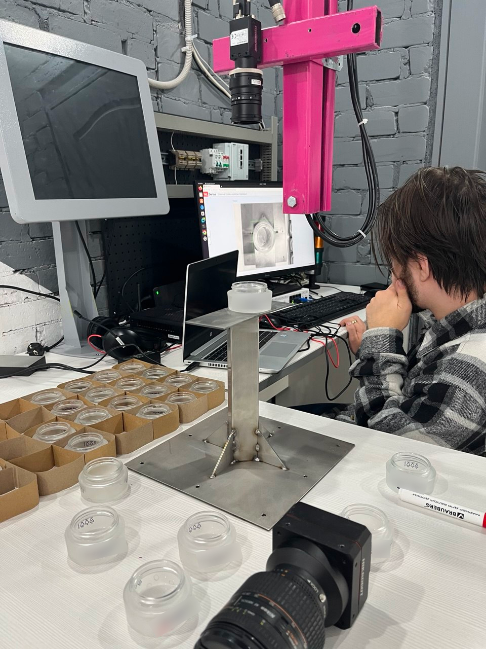 На производстве не было системного мониторинга качества стеклотары. Визуально брак встречался редко, но даже единичный дефект, попавший впродажу, мог повлиять на репутацию бренда. Клиенту нужна была полноценная система, исключающая человеческий фактор и минимизирующая риск попадания дефектных банок в продажу.