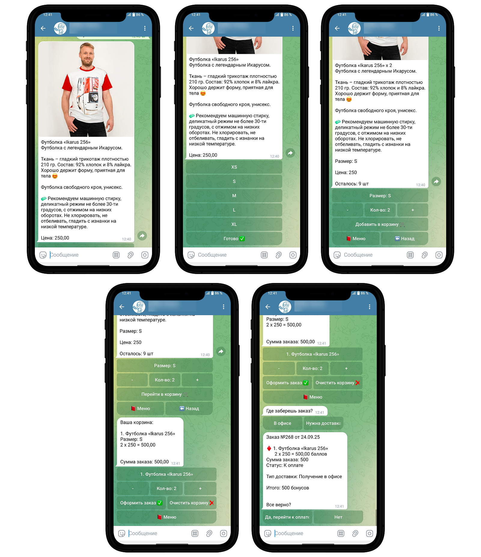 Процесс оформления заказа также идентичен обычному интернет-магазину. Статусы заказа меняются автоматически.