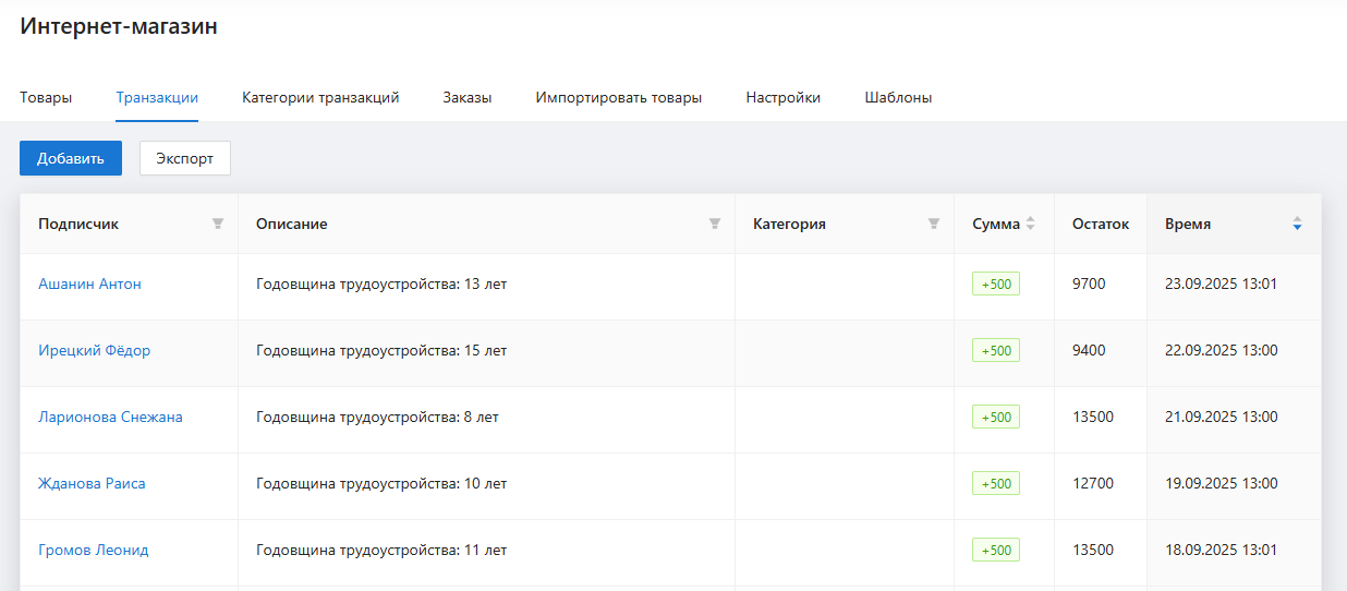 Каждому событию присваивается своя сумма бонусов: более значимое для компании действие оценивается выше. Например, участие в конференции может приносить 1000 бонусов, а комментарий для статьи — 300. Это позволяет четко связывать вклад сотрудника с вознаграждением и видеть, что именно ценится компанией.