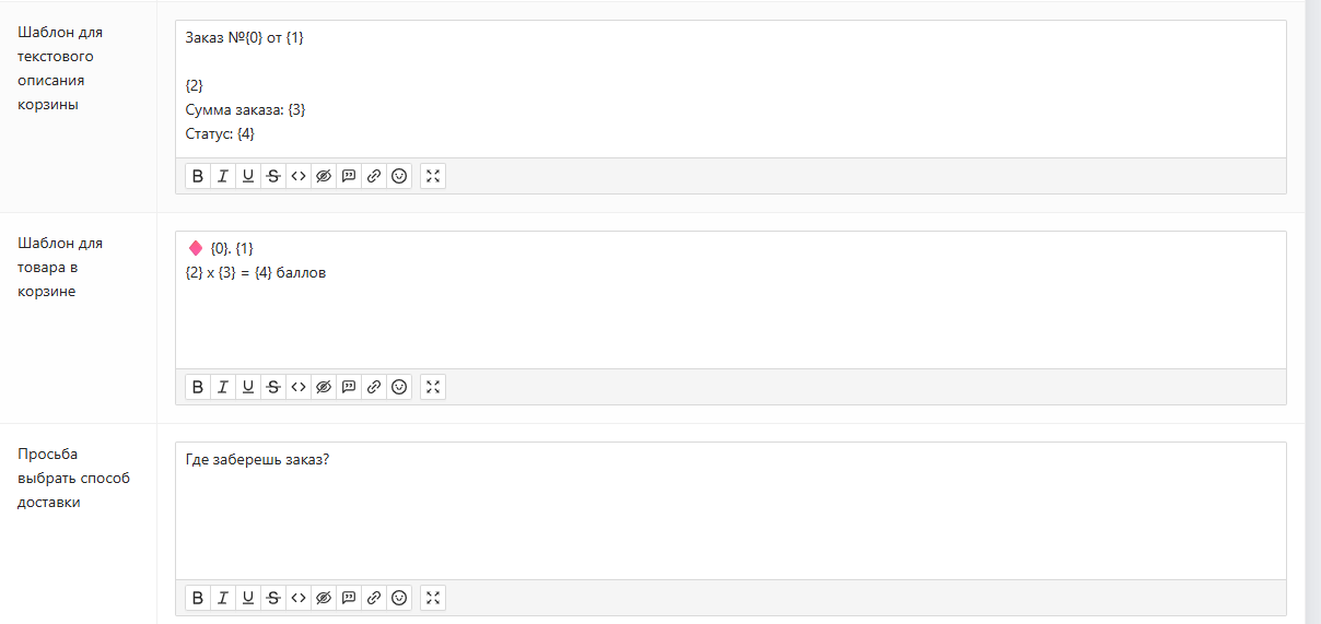 Интерфейс интернет-магазина со стороны администратора: настройка шаблонов сообщенийИнтерфейс интернет-магазина со стороны администратора: заполнение остатков товара (в данном случае вручную, но есть возможность загружать файлом или подтягивать из 1С)