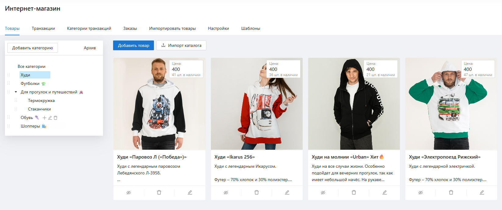 Каталог и управление товарами