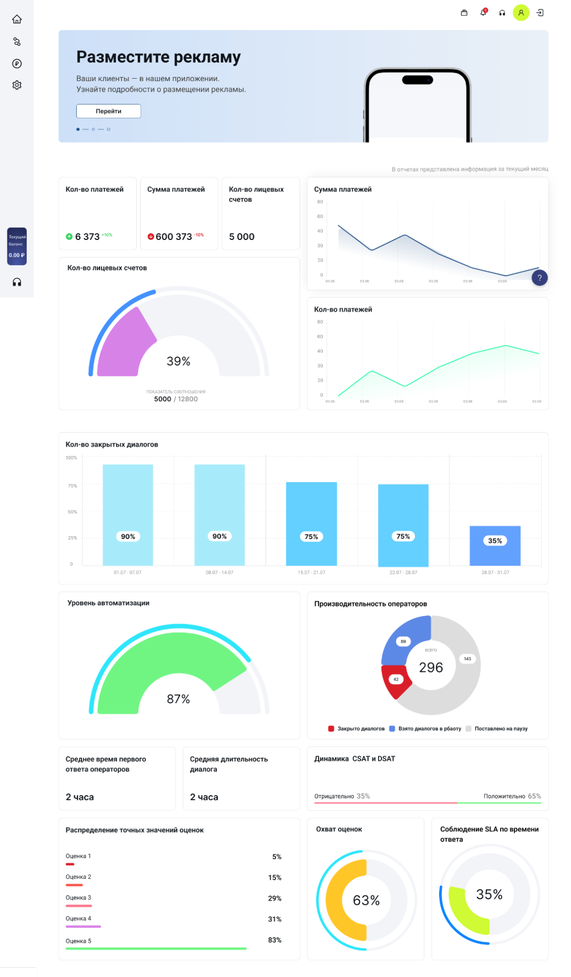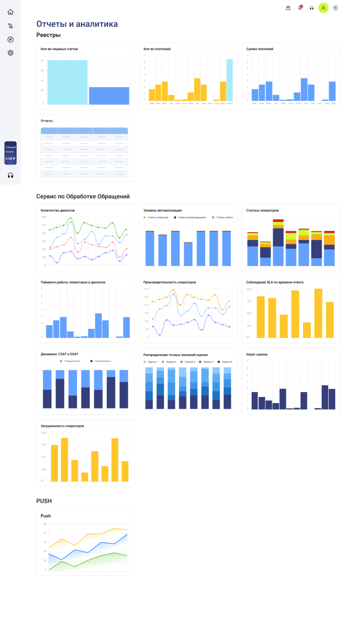Разработан личный кабинет для поставщиков ЖКУ с современным интерфейсом, дашбордами и модулем пуш-уведомлений. Поставщики могут управлять балансами, платежами и рассылками, работать с реестрами начислений и получать отчёты онлайн. Это сокращает ручную работу и обращения в поддержку.