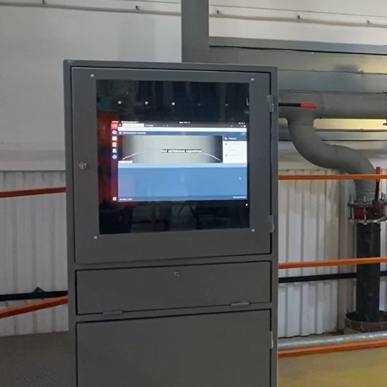 Сервер и пост контроля металлопроката для оператора совмещены в одном месте, чтобы сотрудник мог запускать сессию контроля брака одновременно с установкой новой бобины.