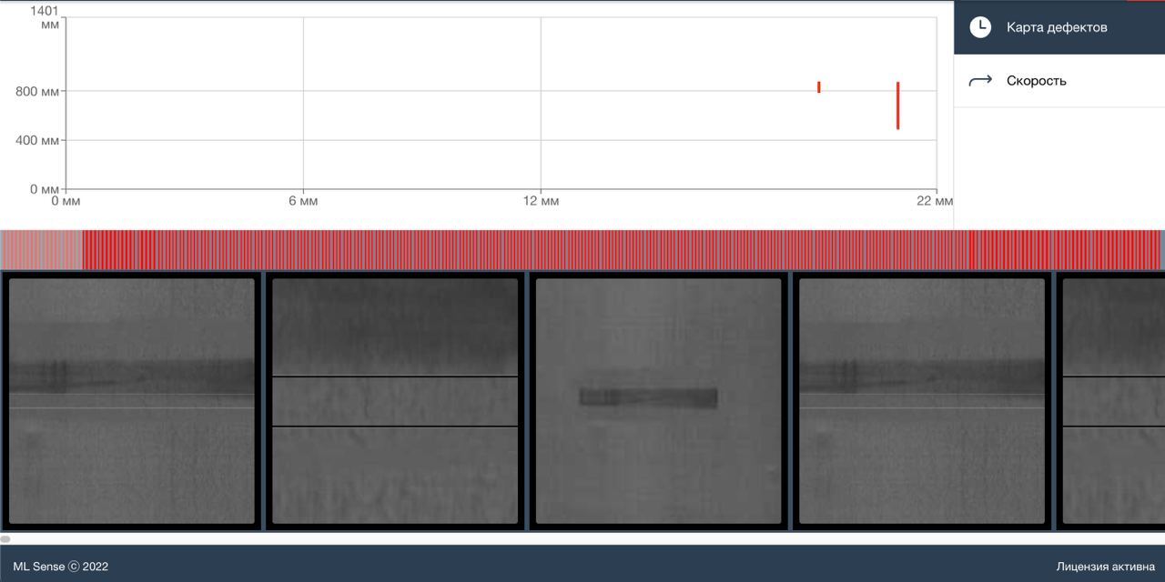 Для ускорения процесса контроля нужно было детектировать различные виды дефектов на полотне металлопроката и автоматизировать формирование отчетов.