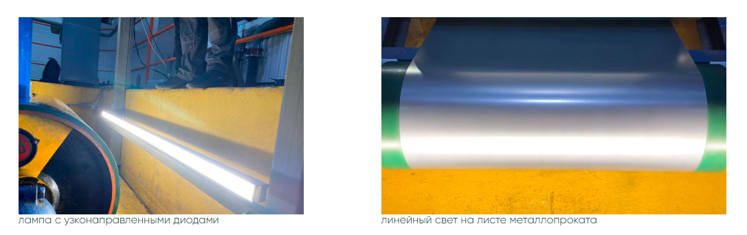 Для качественного освещения поверхности листа металлопроката мы используем лампы высокой интенсивности. При неправильном подборе светового оборудования в зоне освещения могут возникать полутени и разница оттенков, которые система может принять за дефект.