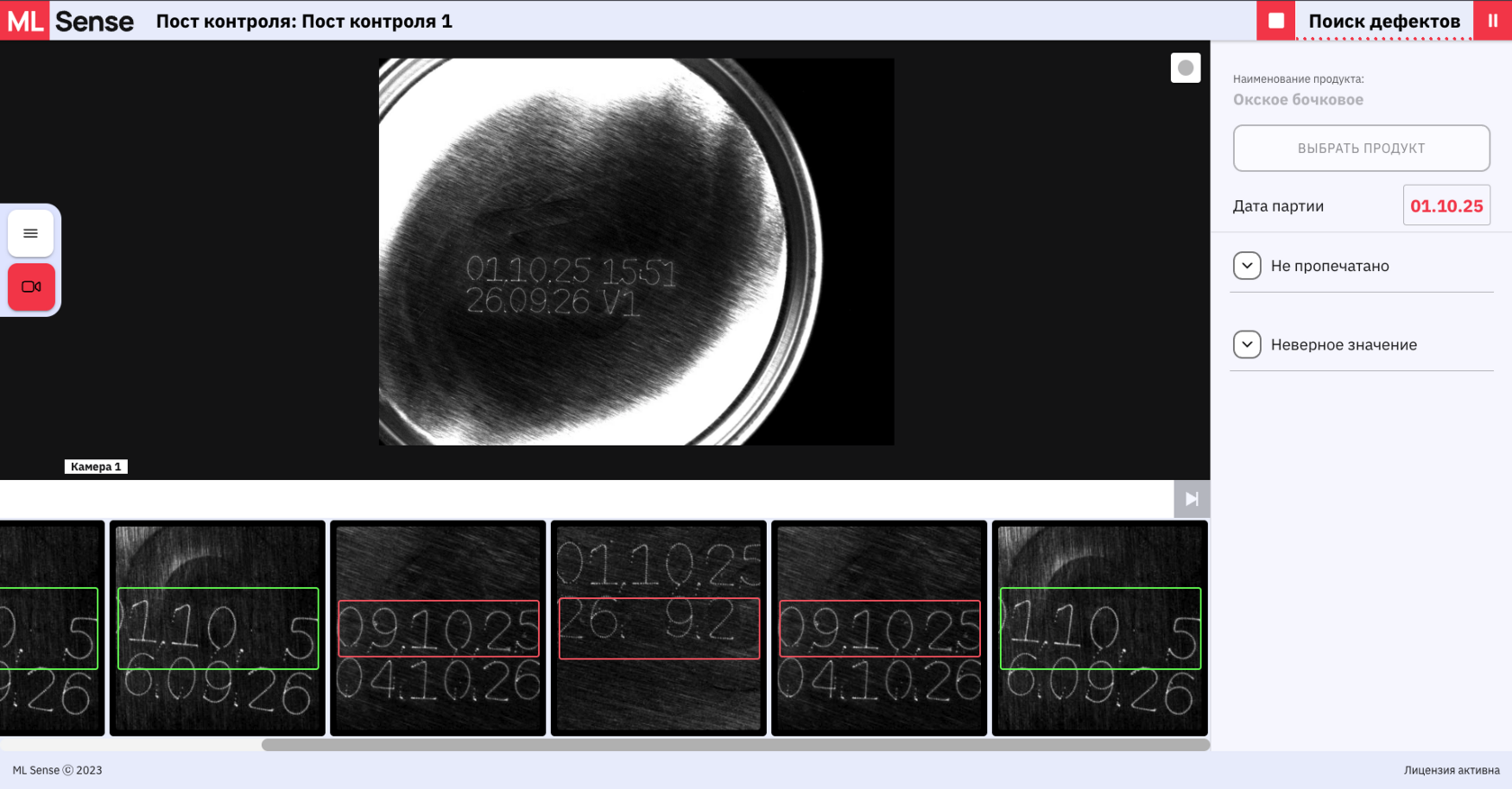 Решение автоматически проверяет каждую банку и находит ошибки в маркировке: нечитаемую дату, неполную печать или несоответствие дню розлива и сроку годности. При ошибке линия останавливается, оператор сразу получает уведомление.