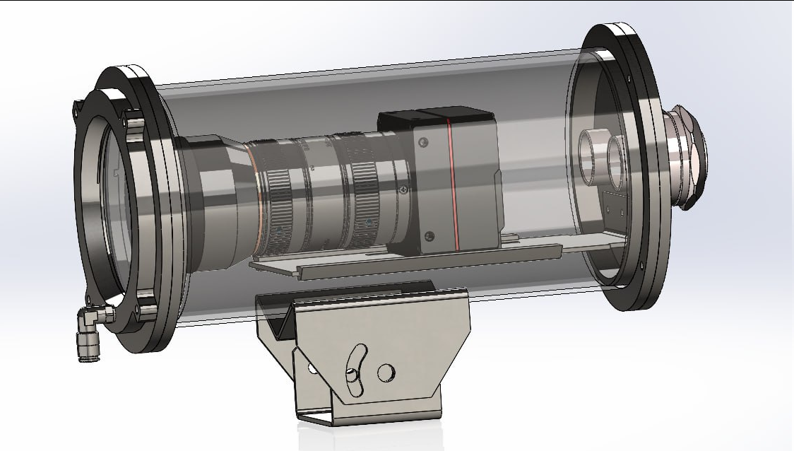 Для бесперебойной работы в такой среде потребовались промышленные камеры в гермокожухах IP68, стойкие к механическим воздействиям. Объективы защищены автоматической системой обдува сжатым воздухом, которая срабатывает в случае, если система определила загрязнение объектива, а система подготовки воздуха предотвращает образование конденсата. Дополнительное промышленное освещение обеспечивает стабильное качество изображения при скорости движения конвейера до 3 м/с.