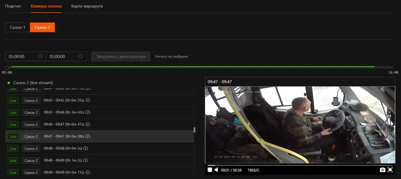 Следующим шагом стала инсталляция оборудования на борту автобусов. Камеры для подсчета пассажиров установили над входными дверями, а в салоне разместили дополнительные камеры, включая одну, направленную на водителя (в соответствии с требованиями ПП №969). Весь видеопоток записывается на жесткий диск видеорегистратора, после чего информация загружается на сервер RDetector и обрабатывается системой видеоаналитики.
