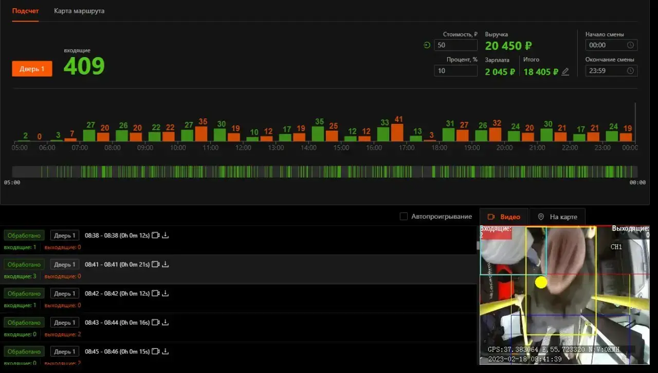 После настройки система заработала в полную силу. Камеры фиксируют всех вошедших и вышедших пассажиров, передают данные в облако, где нейросеть анализирует видео и определяет реальное количество людей.