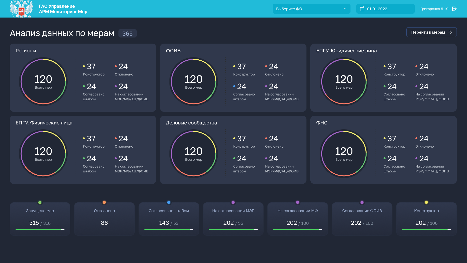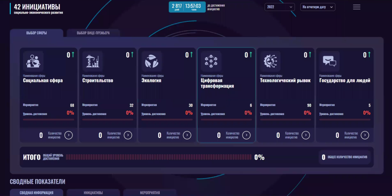 - реализовано отслеживание исполнения инициатив по каждой отрасли в режиме реального времени.