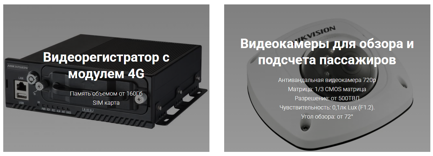 На 24 автобуса установили антивандальные камеры над входными дверями, а также видеорегистраторы с поддержкой 4G и GPS. Оборудование адаптировано к условиям крайнего севера. Комплектация — индивидуальная: один, два или три комплекта камер в зависимости от числа дверей.