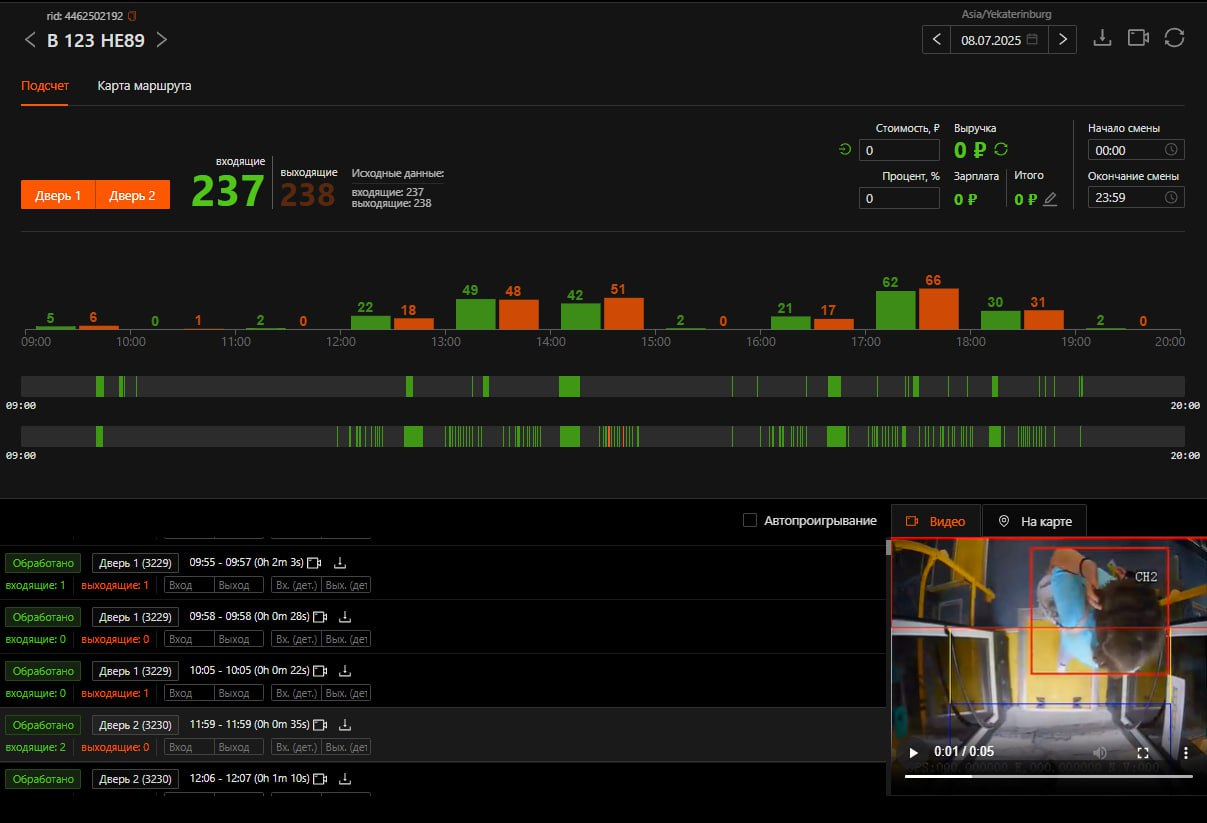- количество вошедших и вышедших пассажиров;