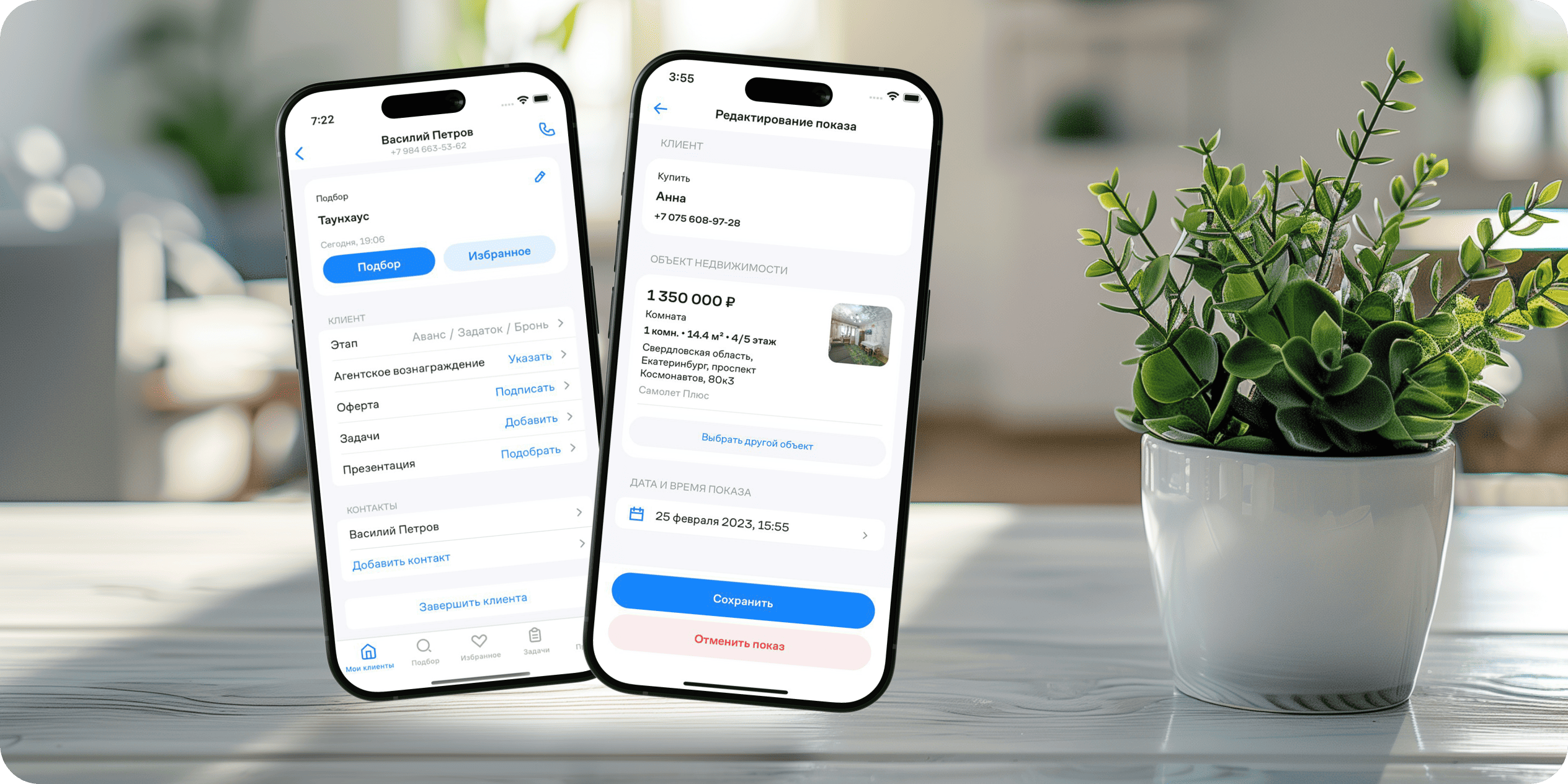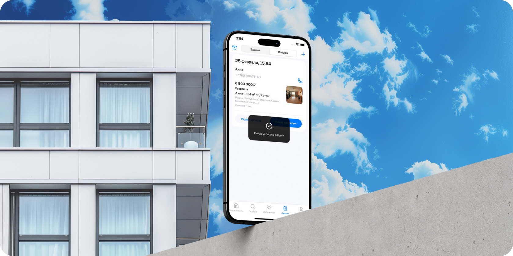 Теперь риелтор легко управляет встречами через приложение: каждый показ связан с объектом из базы и с клиентом, который заинтересован в покупке. Внутри приложения можно ставить задачи по сделкам, а также работать с актуальной базой объектов.