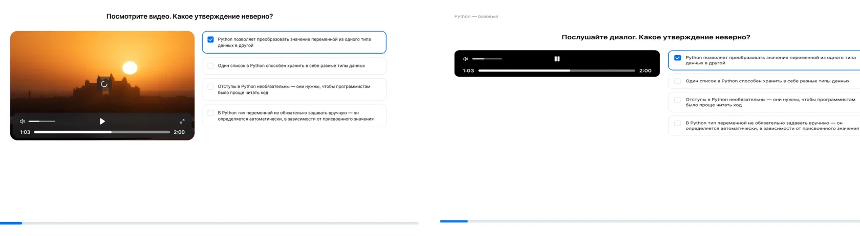 Мы значительно расширили функциональность тестирования, добавив поддержку мультимедийных материалов: аудио, видео и изображений.